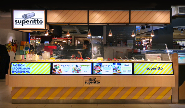 Superitto is a guaranteed healthy-fix of burritos and tortillas that are made of all things SUPER! Wholesomely fresh quality recipes & honest-to-goodness name, a wrap with a common mission - to enjoy a good, healthy, clean food together. Situated at the centre of Paragon amidst the hustle and bustle, we had to keep that in mind while designing the brand identity and kiosk to make sure Superitto pops out!