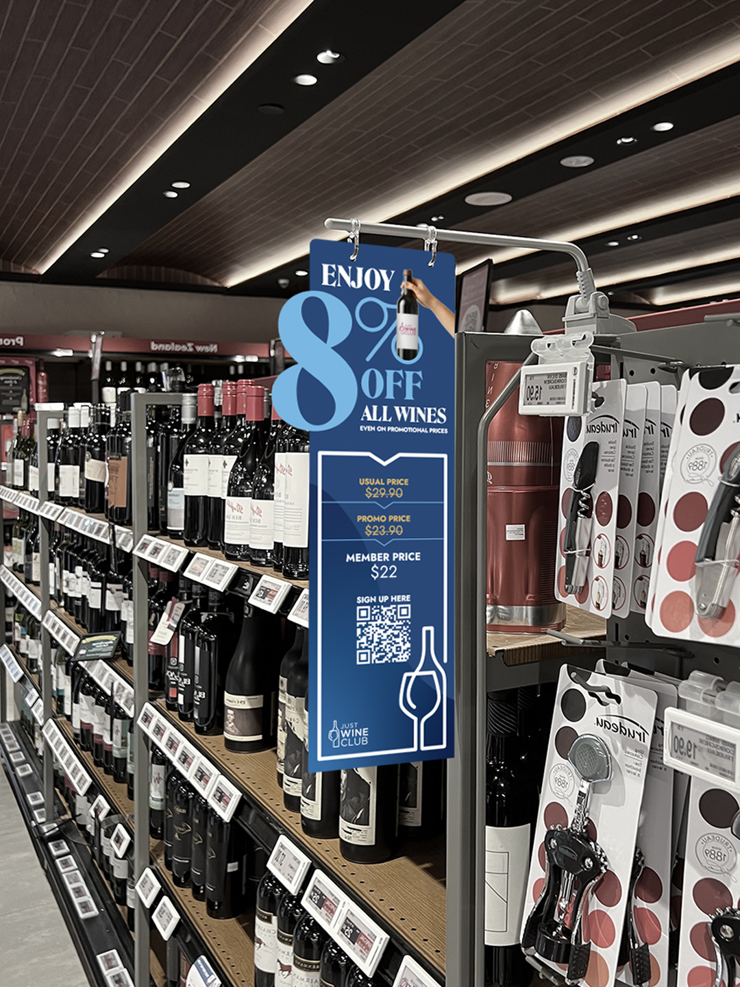 A rebranding programme from the ground up: a new identity, a unified messaging system, and a complete suite of in-store materials designed to convert casual wine shoppers into loyal members.