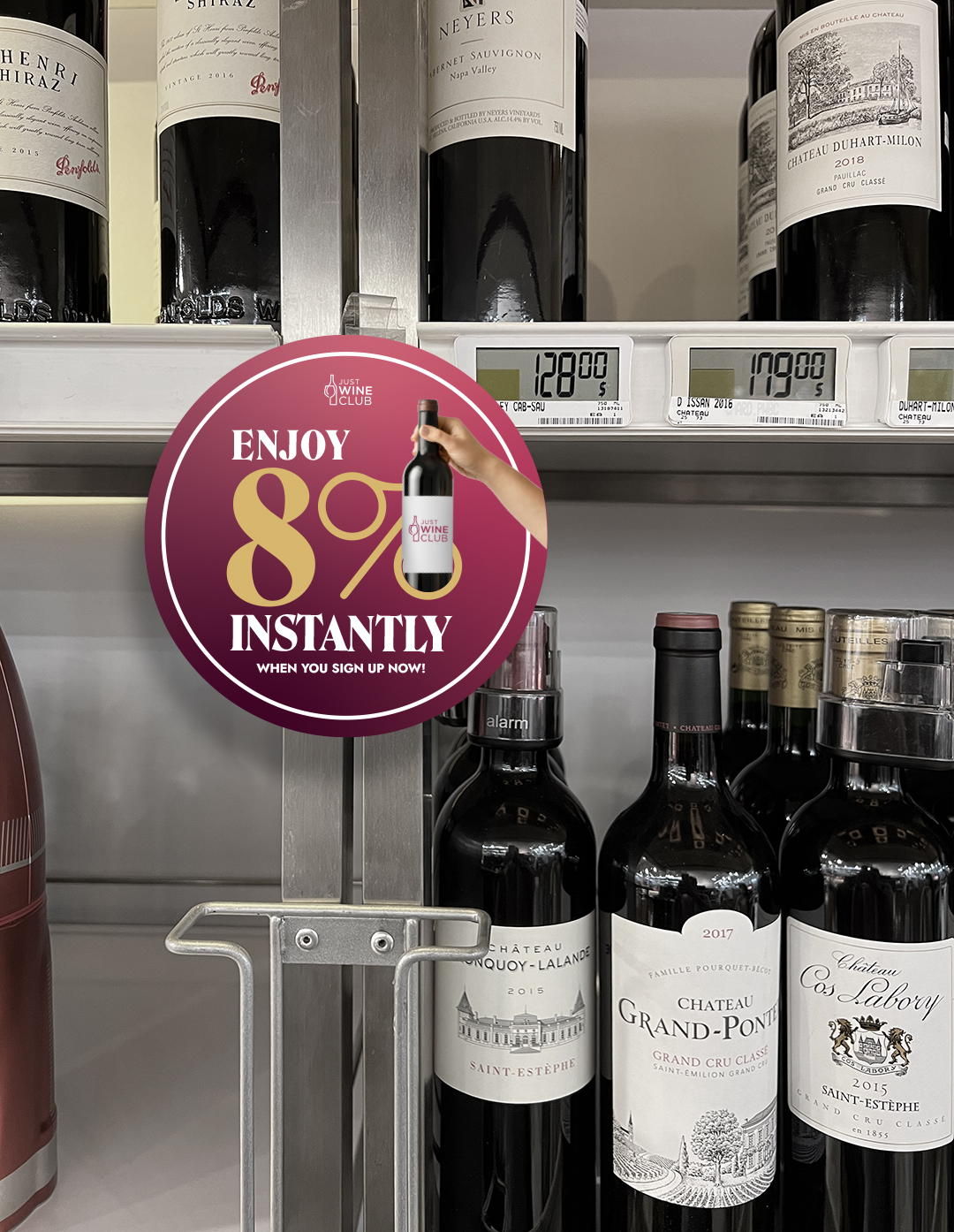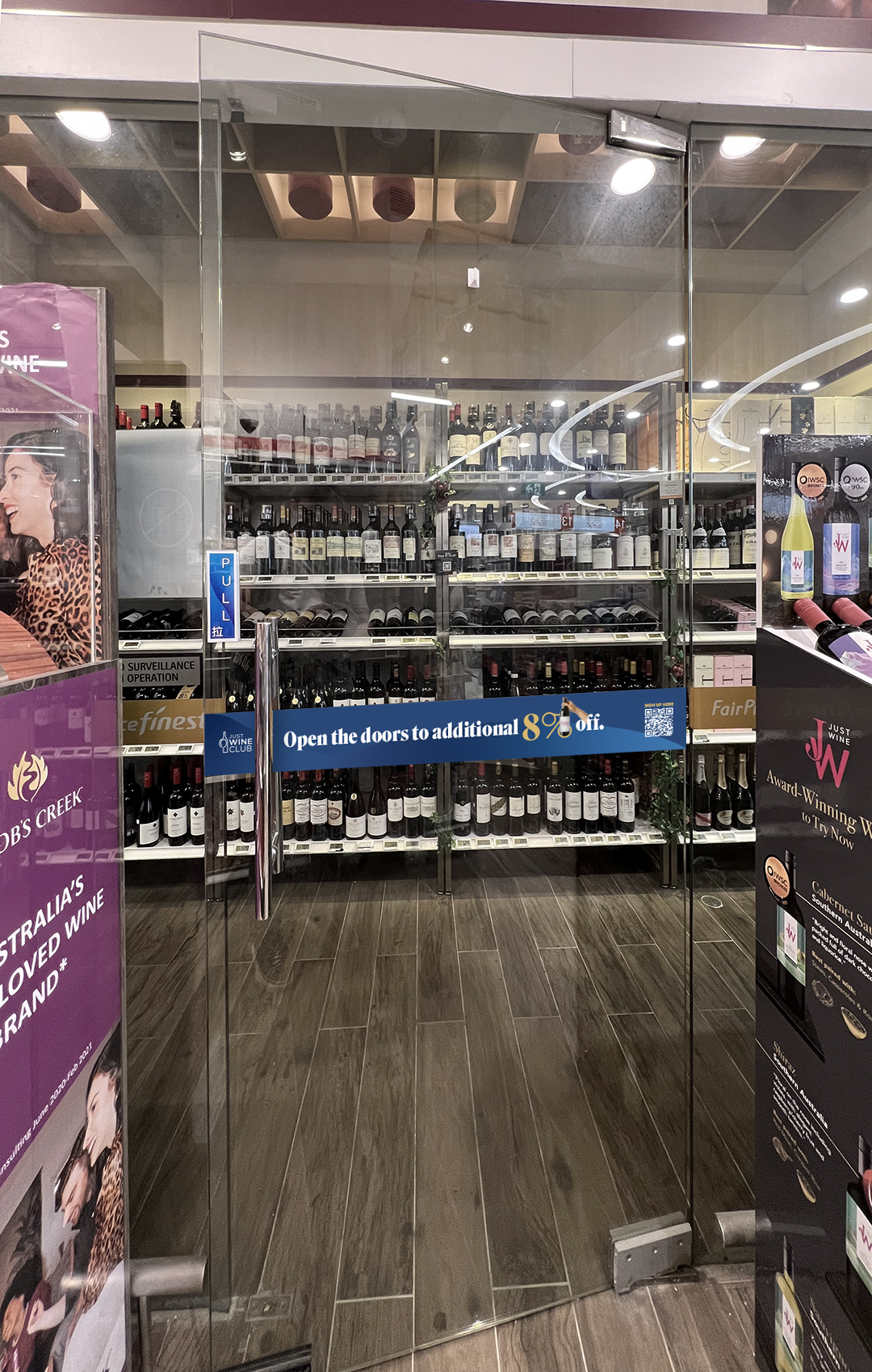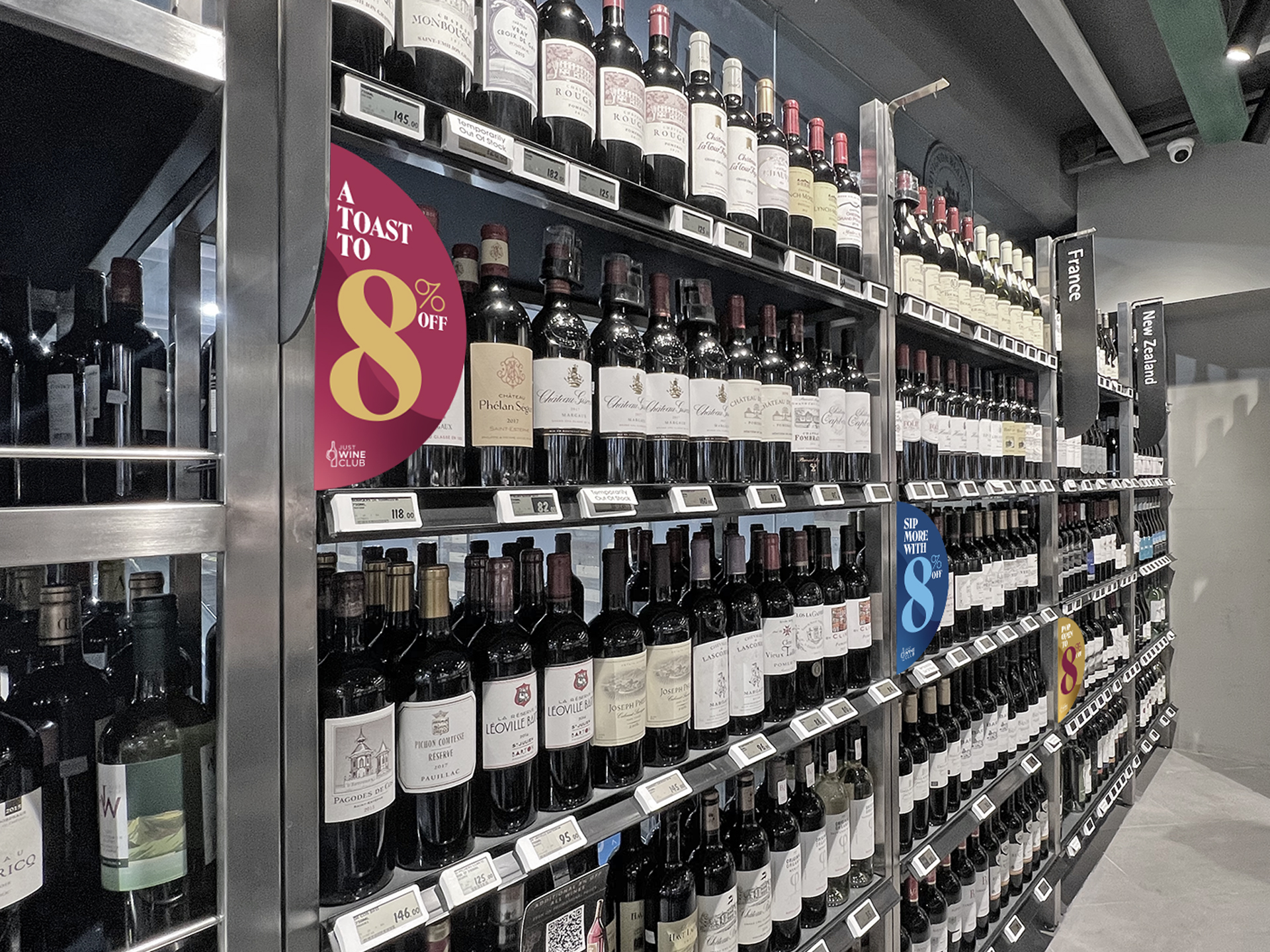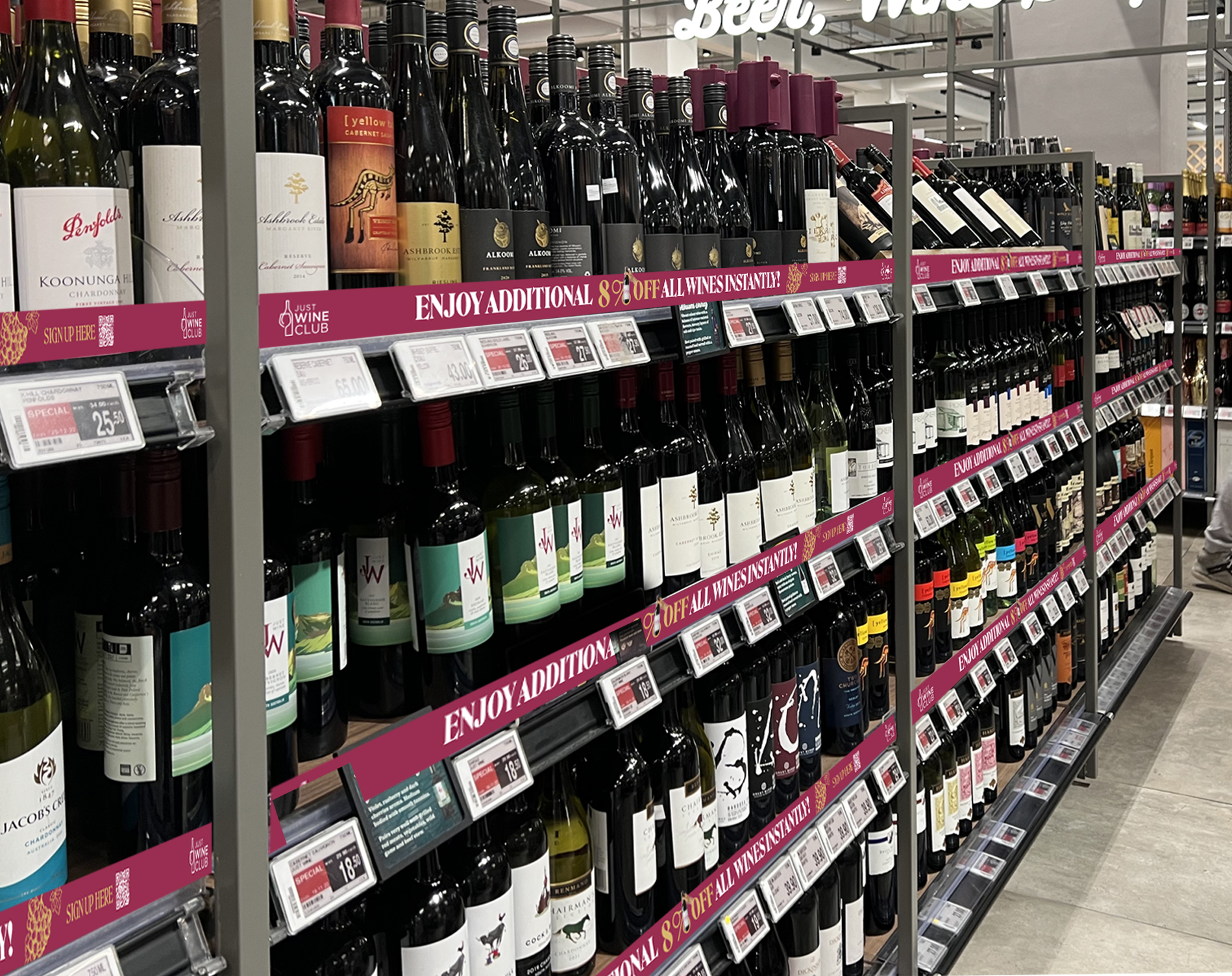 We built the entire communication system around a single anchor: the number 8. Bold, oversized, and unmissable. It became both the value message and the visual identity of JWC. Every touchpoint reinforces the same proposition: enjoy an extra 8% off all wines.